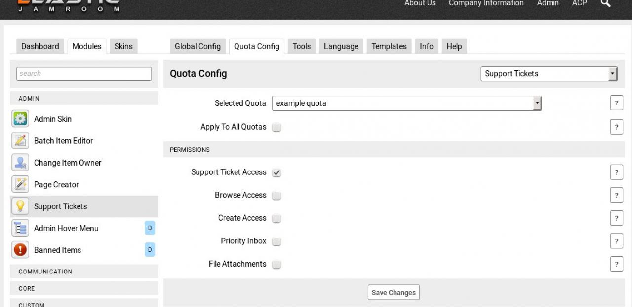 There are several configuration options available in the Support Tickets -> Global Config section: