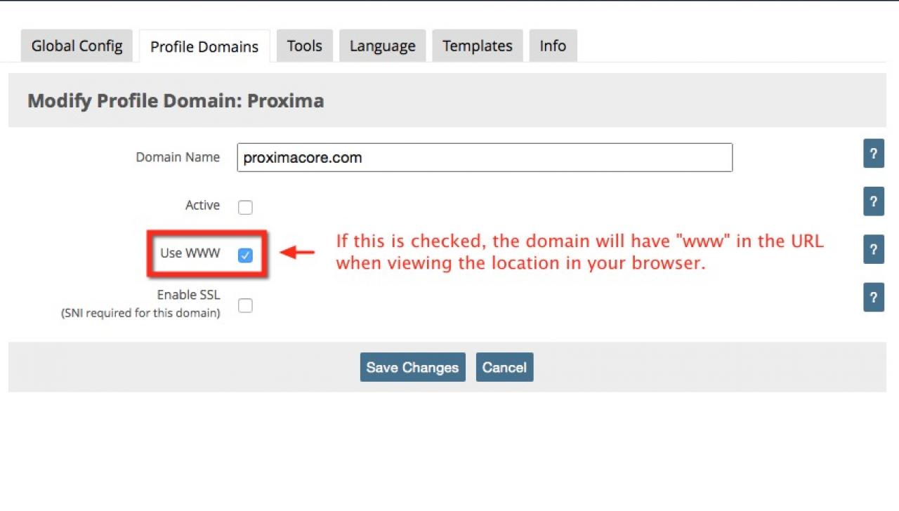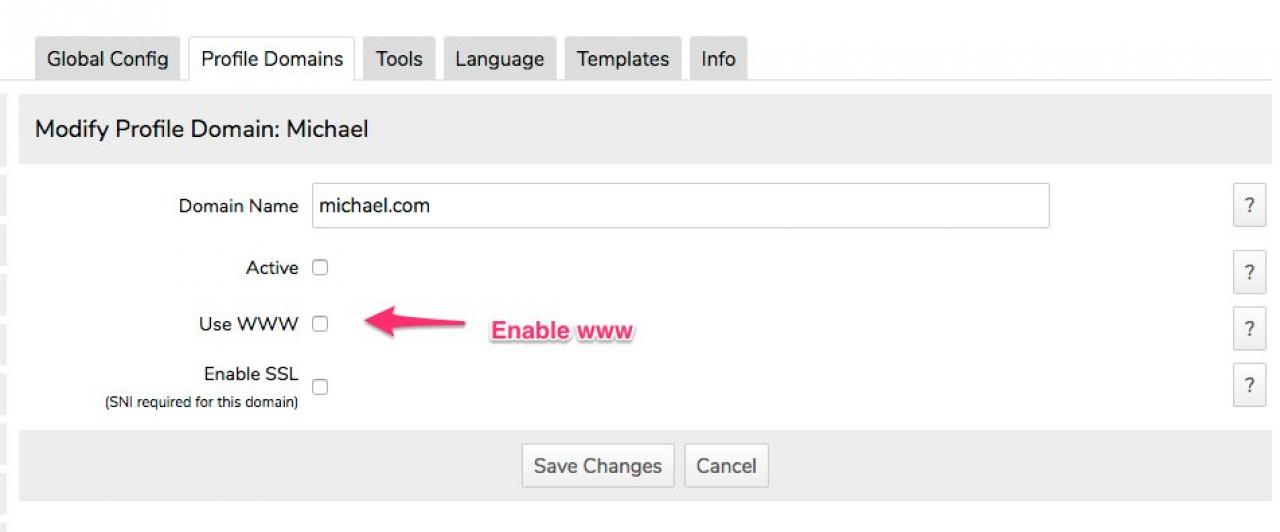 The next step is to update the Apache config for your domain so it will "Include" the configuration that is generated by the Profile Domains module. This step only needs to be done once.