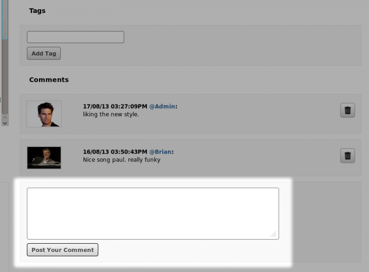 Below is the code that adds the comments box to the item_details.tpl file of the jrAudio module.