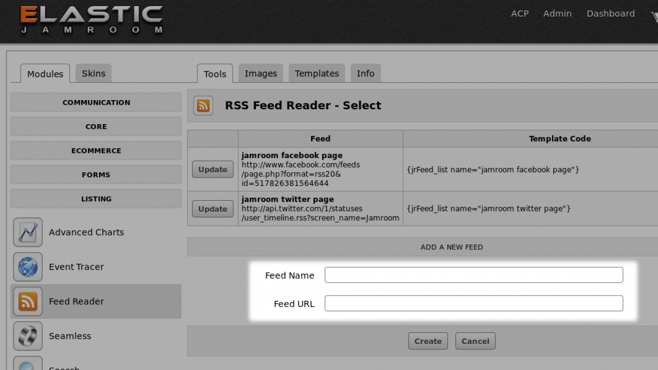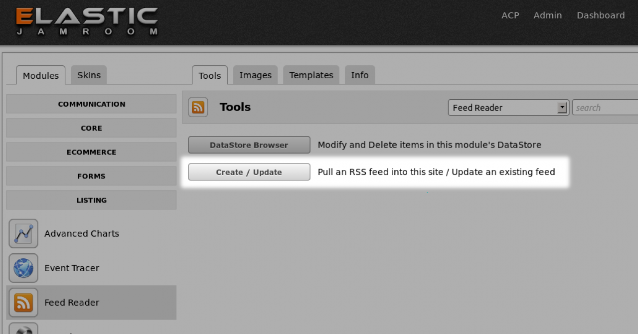 The Feed module also allows content from your site to be formatted into a feed for others to read.