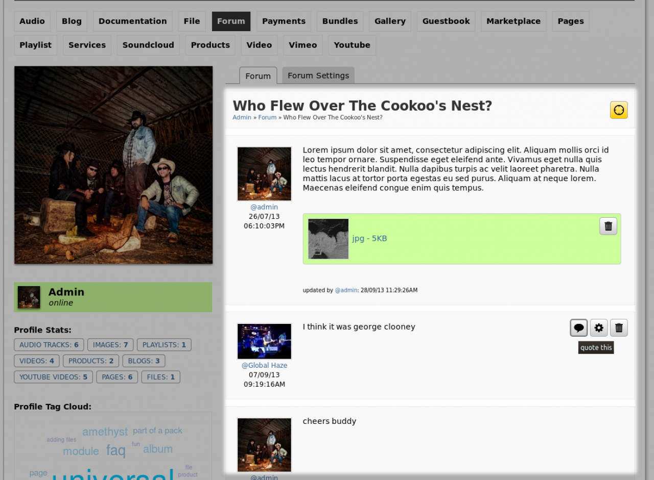 {jrCore_list module="jrForum" search="profile_id = 1" search2="forum_cat like %"}