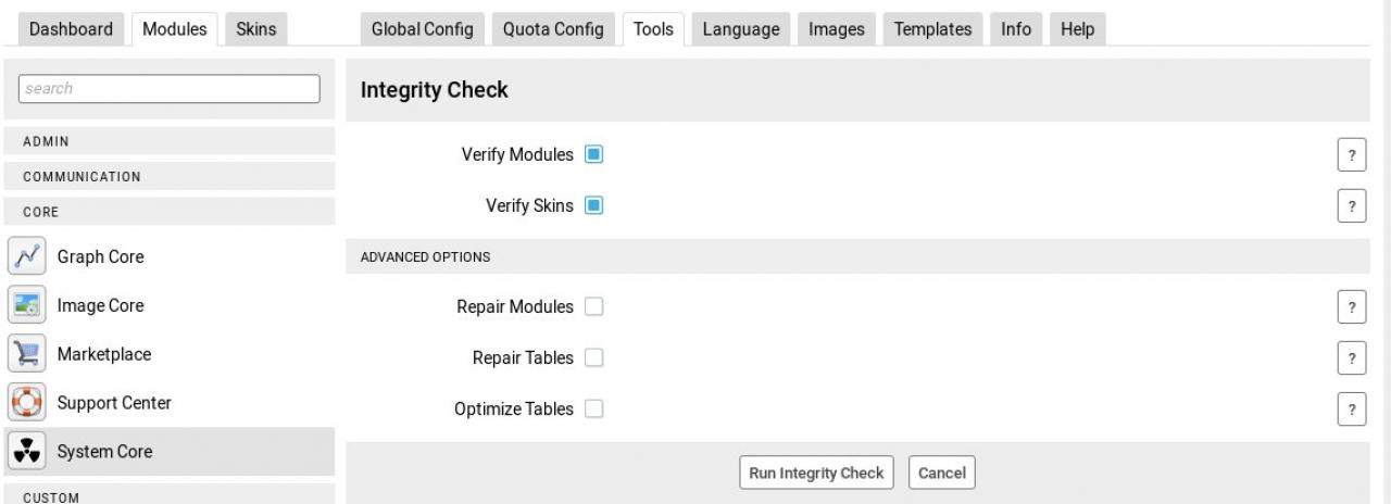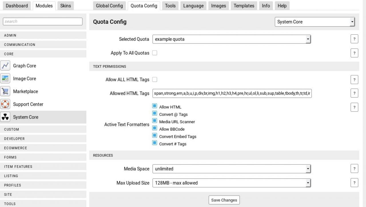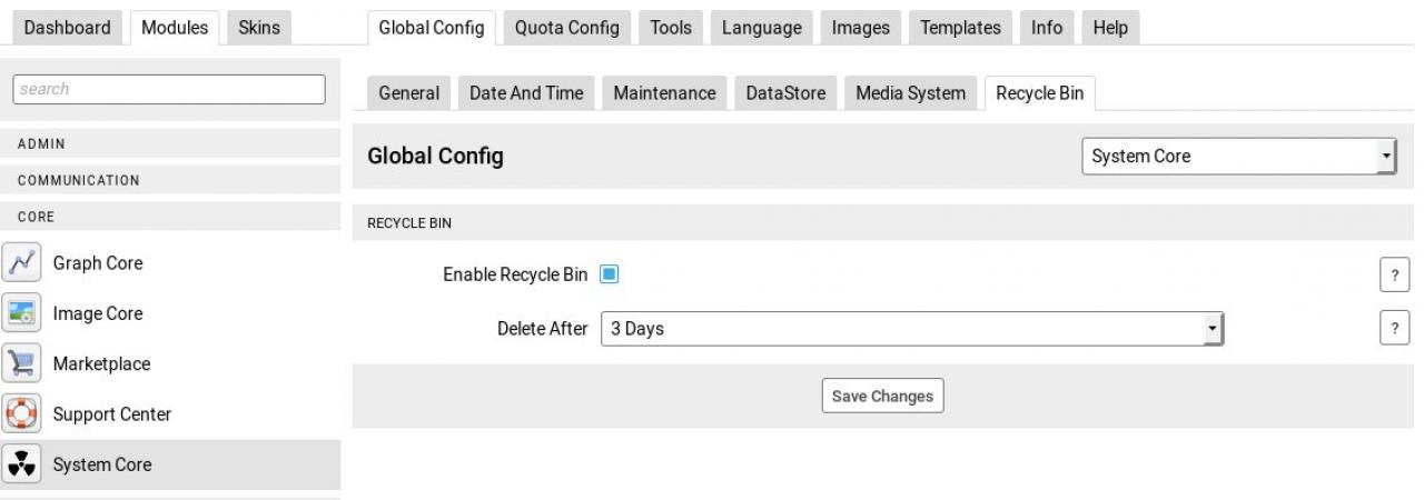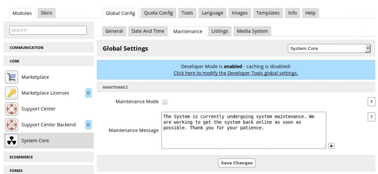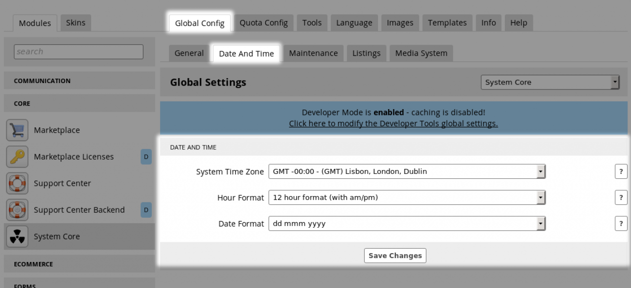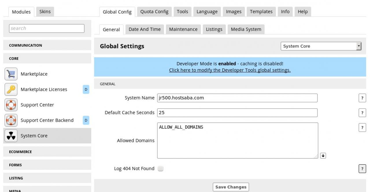 The Global Config tab on the System Core module is where you set all of the basic settings you want for the system.