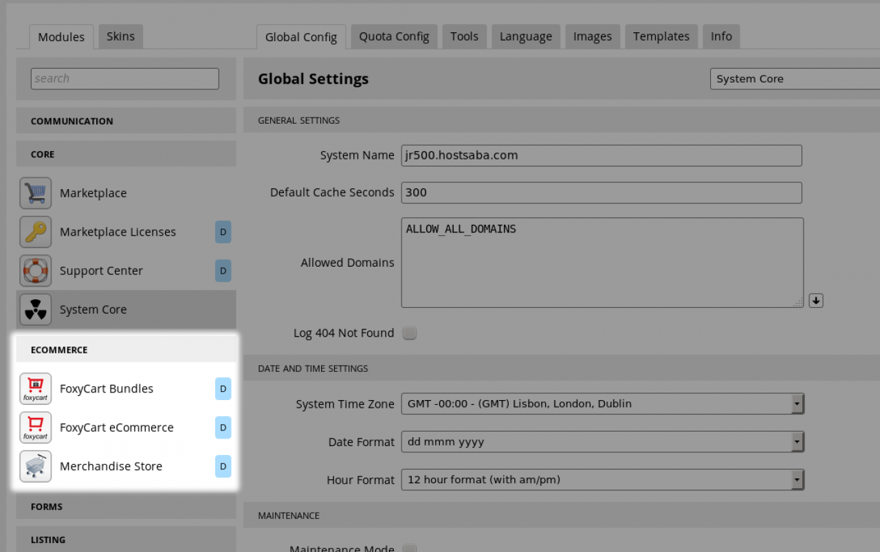 • The ecommerce section of the ACP (Admin Control Panel) houses the modules related ecommerce of your site to users.