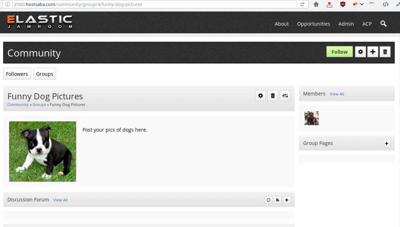 Jamroom is by its nature profile centric and groups are no different. The Groups module is located on a profile, so the URL of a group will look like this: