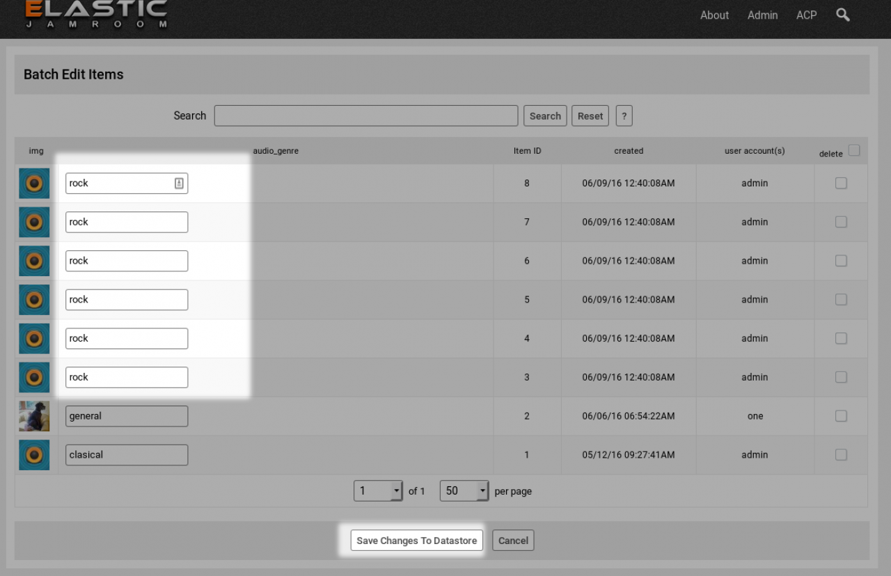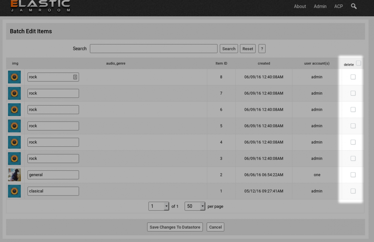 rock category, you can check the checkbox next to those items and