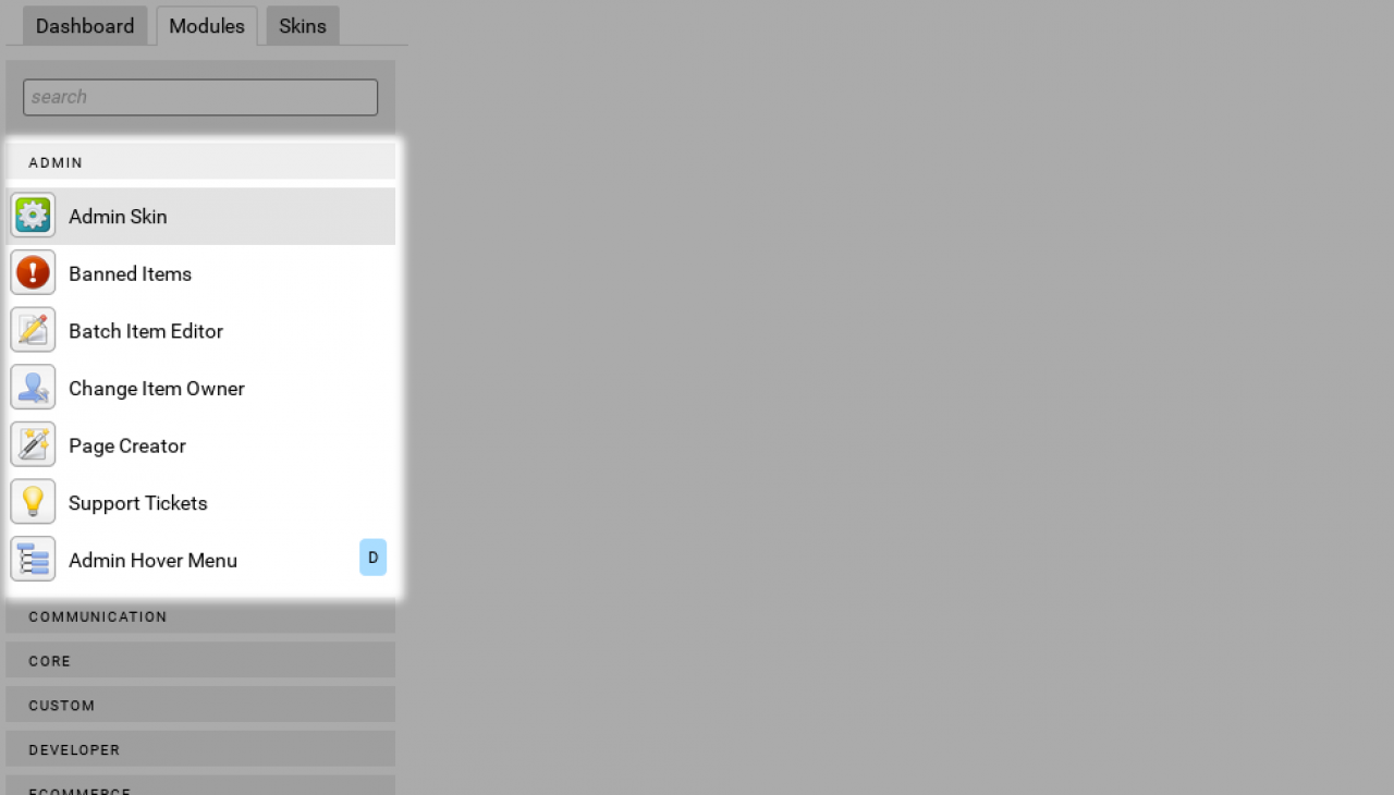 In this section you will find modules directly useful to the admin user doing admin stuff.