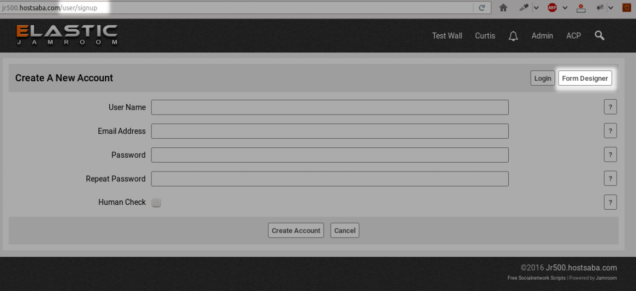 You will see the Form Designer button on the top right of the signup form when you are logged in as the admin user.