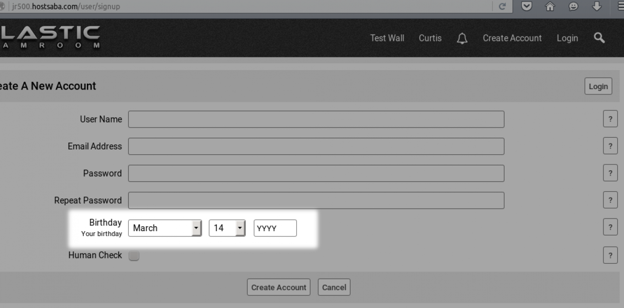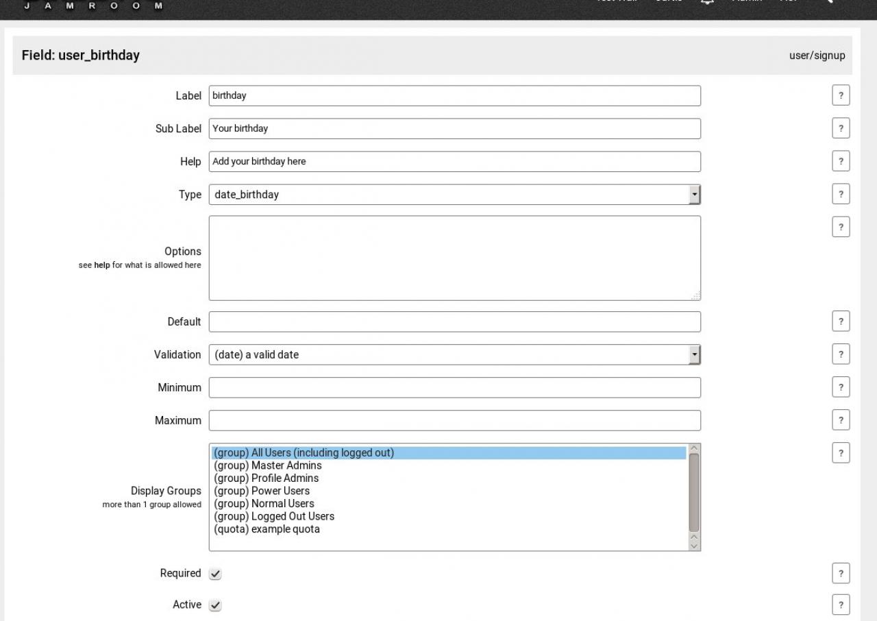 In the screenshots below you can see the user/signup form which includes a "User Birthday" field added by the Form Designer