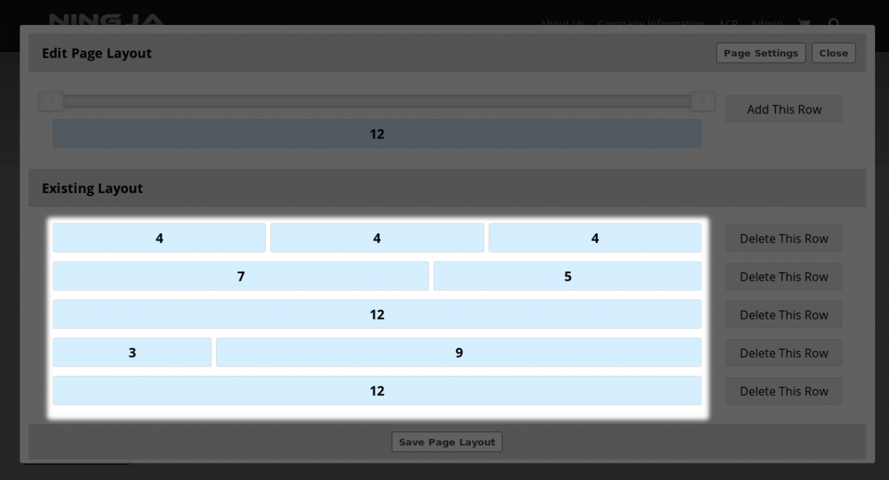 Below is a screenshot of an excessively complex page layout containing 5 rows. Each of those row sections can contain an unlimited number of widgets which in turn contain content. So the page layout in the screenshot below is very excessive.