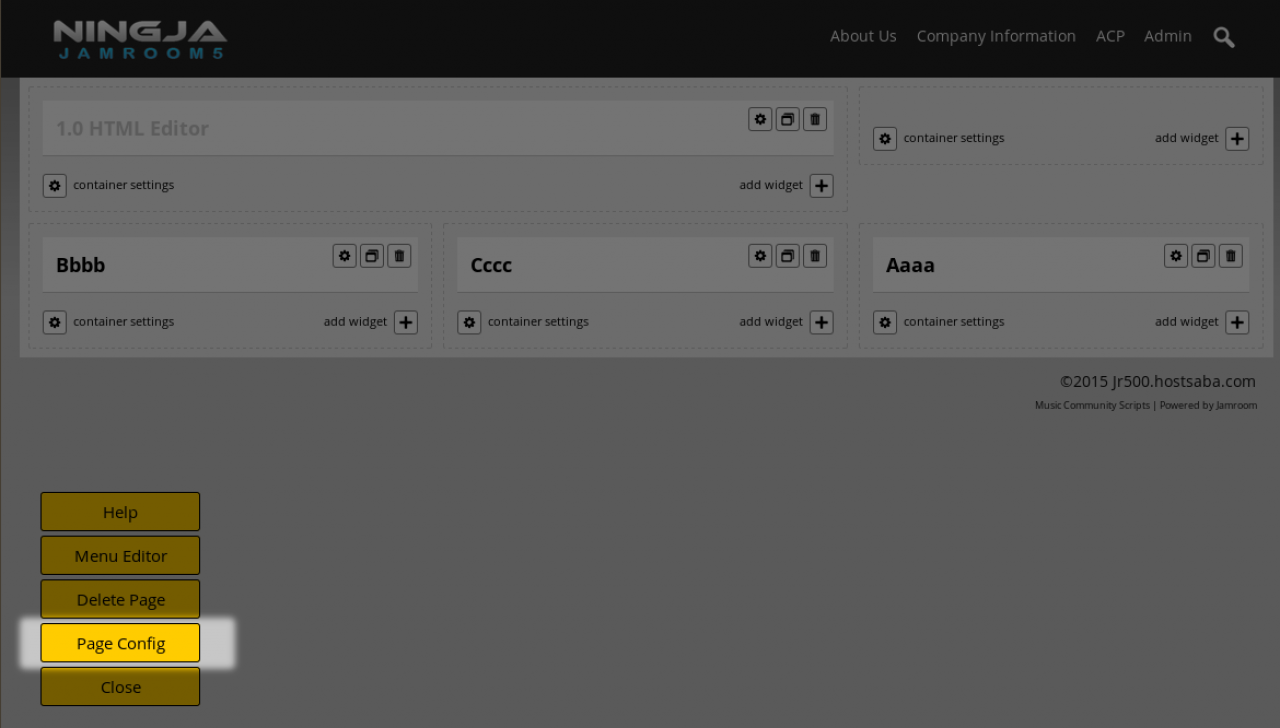 screenshot of the page config button