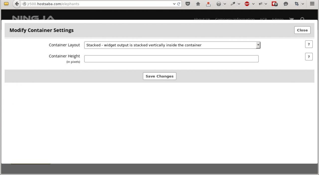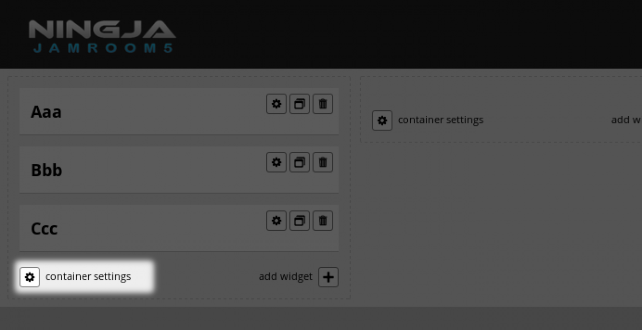 The container settings button brings up the settings that relate to the container. We can see in the screenshot above that there are 3 widgets in the container.
