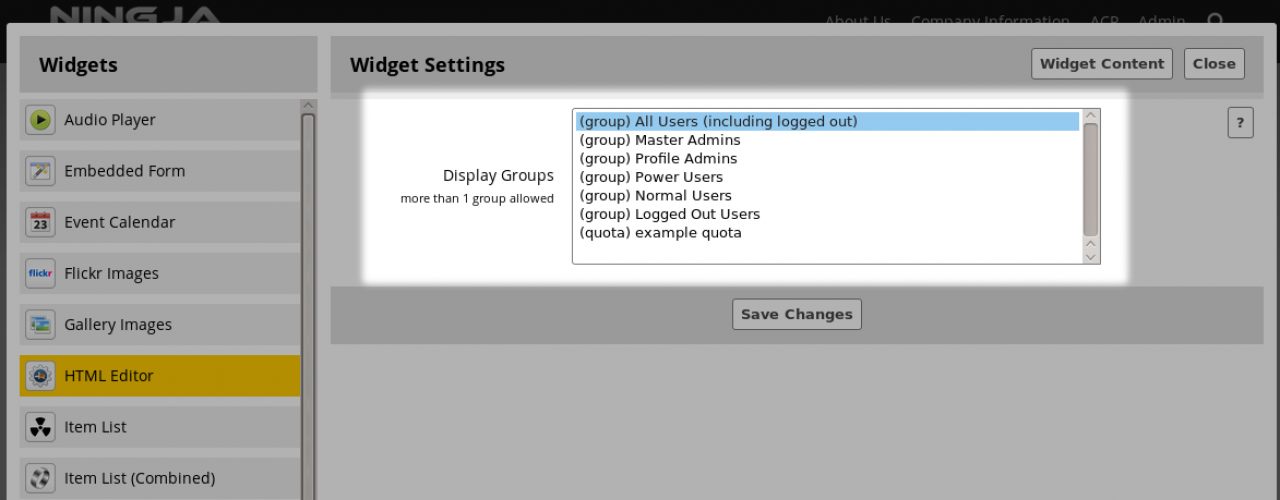 You can use ctrl+click to select multiple options for who will see the widget.