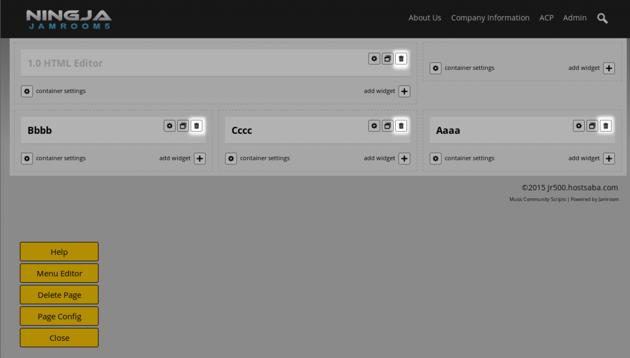 Deleting a widget is done from the Site Builder interface. Each of the widgets have a trash icon in the heading. Click on the trash icon to delete the widget.