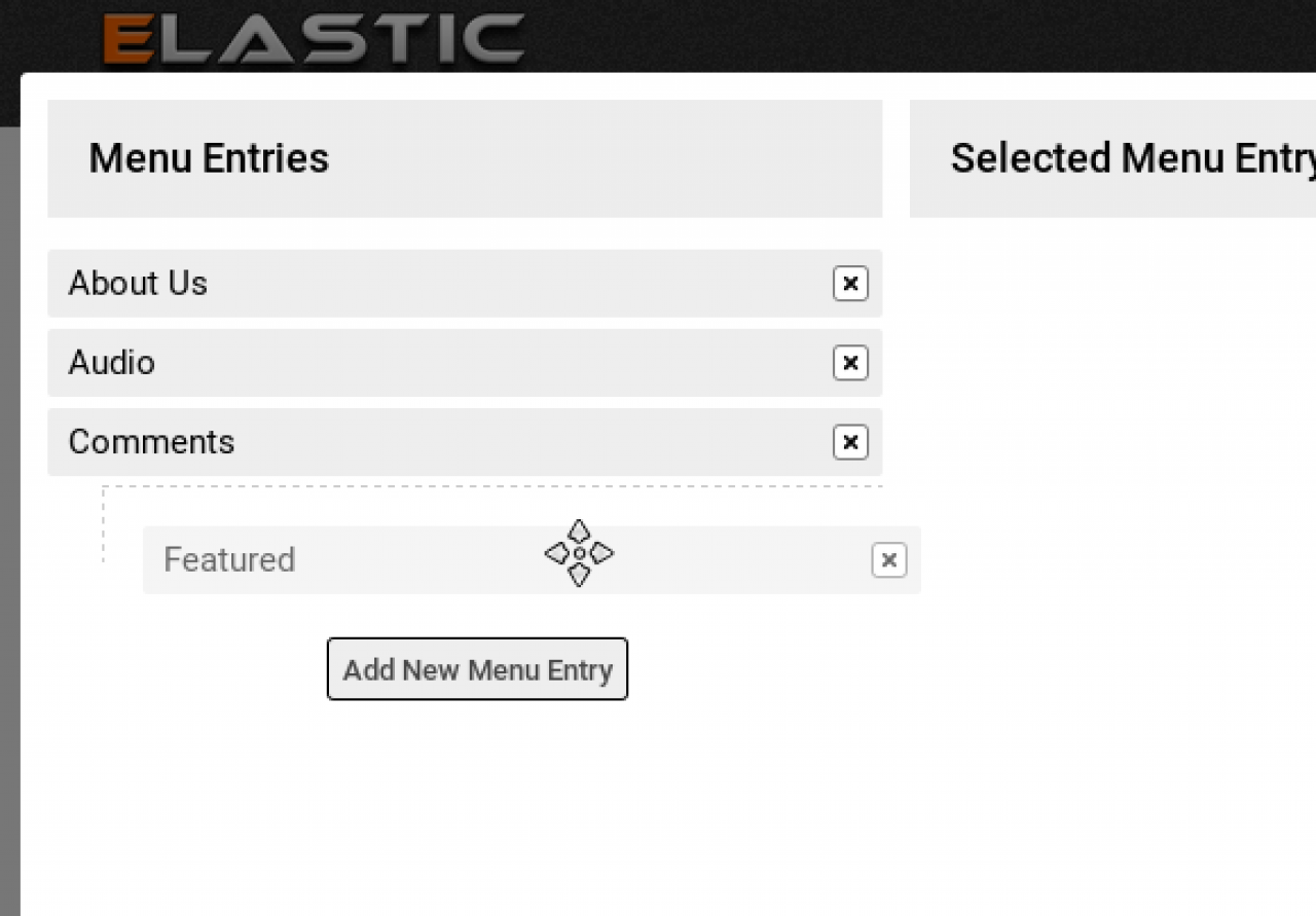 If for example we want to have the previously created 'Featured' menu entry as a sub item of the 'Comments' menu entry we just click on it and drag it in wards to nest it.