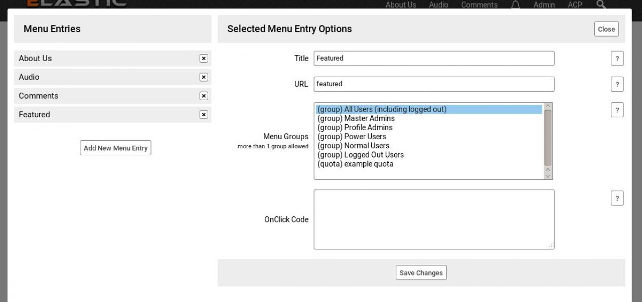 If for example we want to have the previously created 'Featured' menu entry as a sub item of the 'Comments' menu entry we just click on it and drag it in wards to nest it.