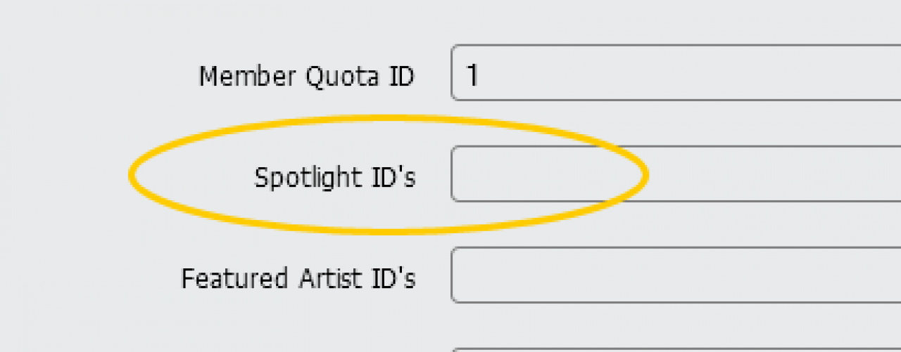 • Note: Separate multiple ID's with a comma, ie. 1,2,3,4,5,6. If left blank the spotlight will show random artists.