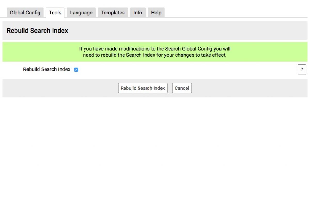5) On the Rebuild Search Index form, make sure the "Rebuild Search Index" box is checked, then press the "Rebuild Search Index" button