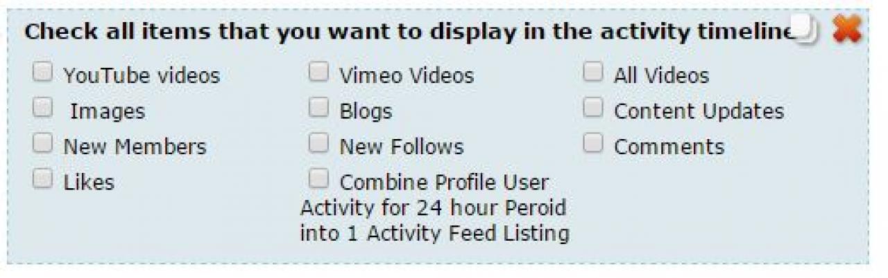I would like to be able to select the content I WANT to show in the activity timeline and UNCHECK the content I dont want to show in the timeline.