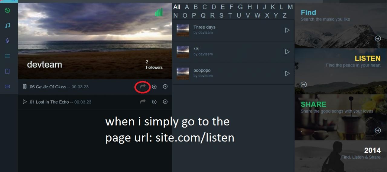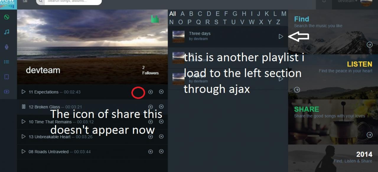 In the image in attach i give an example, in the right i have a list of playlists i want to load on the left side, if i click on the button the left side will be populated by the songs of it.