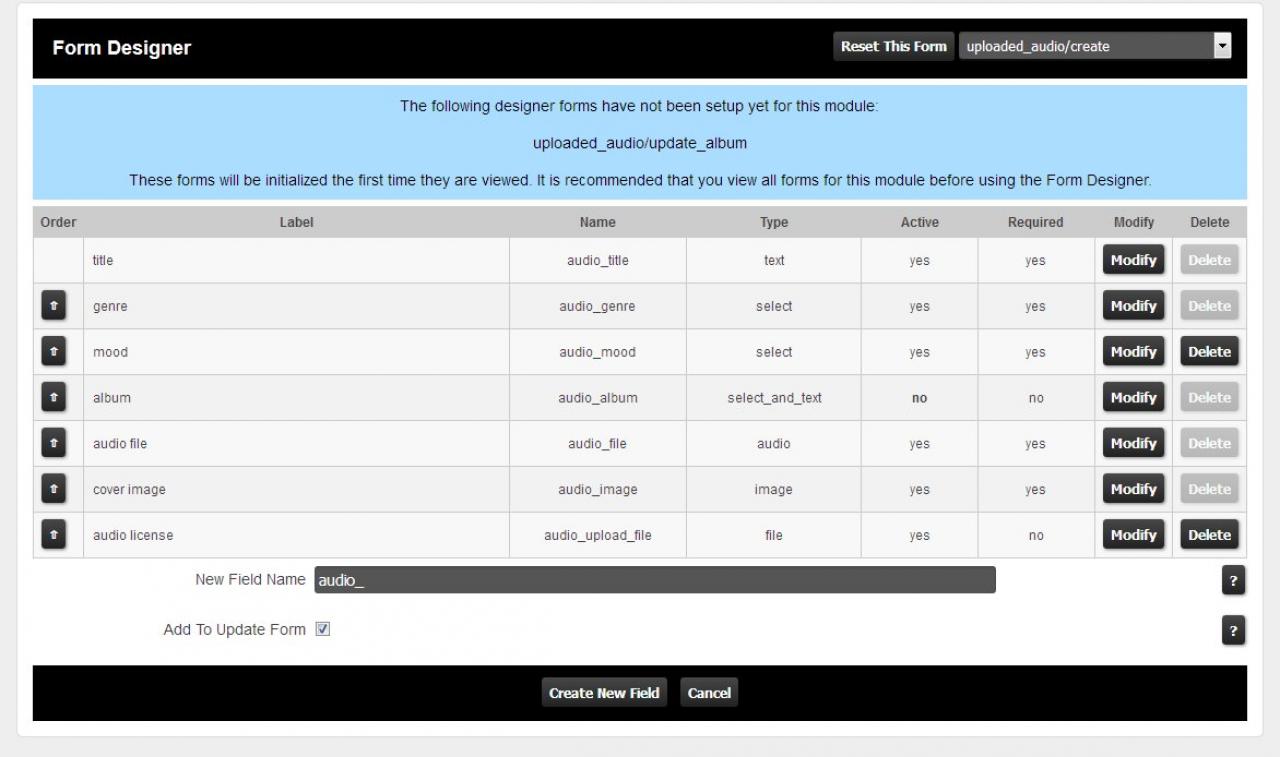 Hi! I would like to add genre and mood option fields to the "create audio file" section.