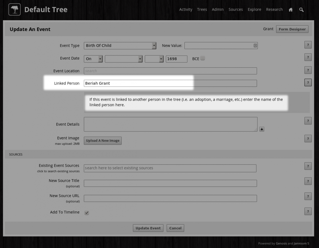 When I create a birth event with a picture for "Son", I want it to be linked to "Mum"'s profile with all details including the photo.