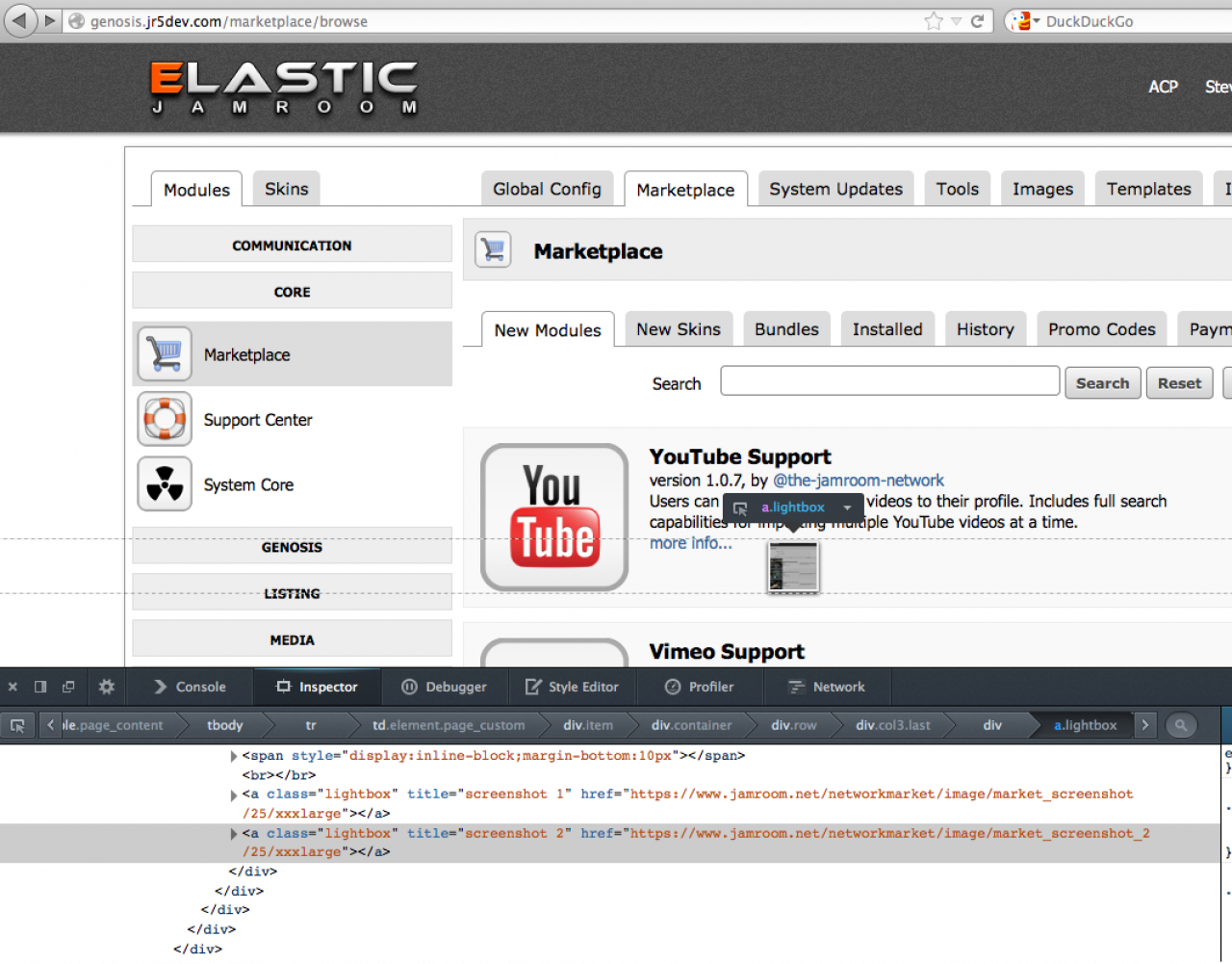 Installing genosis via the marketplace, there's something amiss with the screenshots in marketplace view - the genosis screenshot link is 100% width of the page, so it covers the genosis link in the accordion menu. Instead of opening the accordion, clicking the link opens the second screenshot (both screenshots are stacked on top of one another), but it seems to be a screenshot of the youtube module.