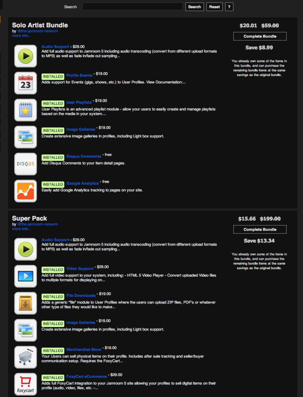 i purchased the superpack back in beta - I saw that the playlist advertisements was not part of the original bundle, so I completed the bundle using the marketplace on my site after upgrading from jamroom 5.0.2 to 5.1.3. now it shows that I didn't buy audio support - which I had previously and it wants another $15.66?
