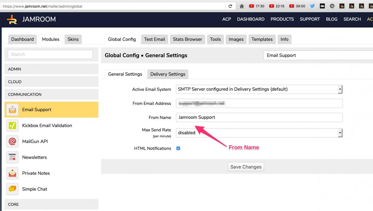 Even if I configure "From Name" under "Email Support ->Global Config -> general settings" emails are sent without a from name. Any additional configuration needed?