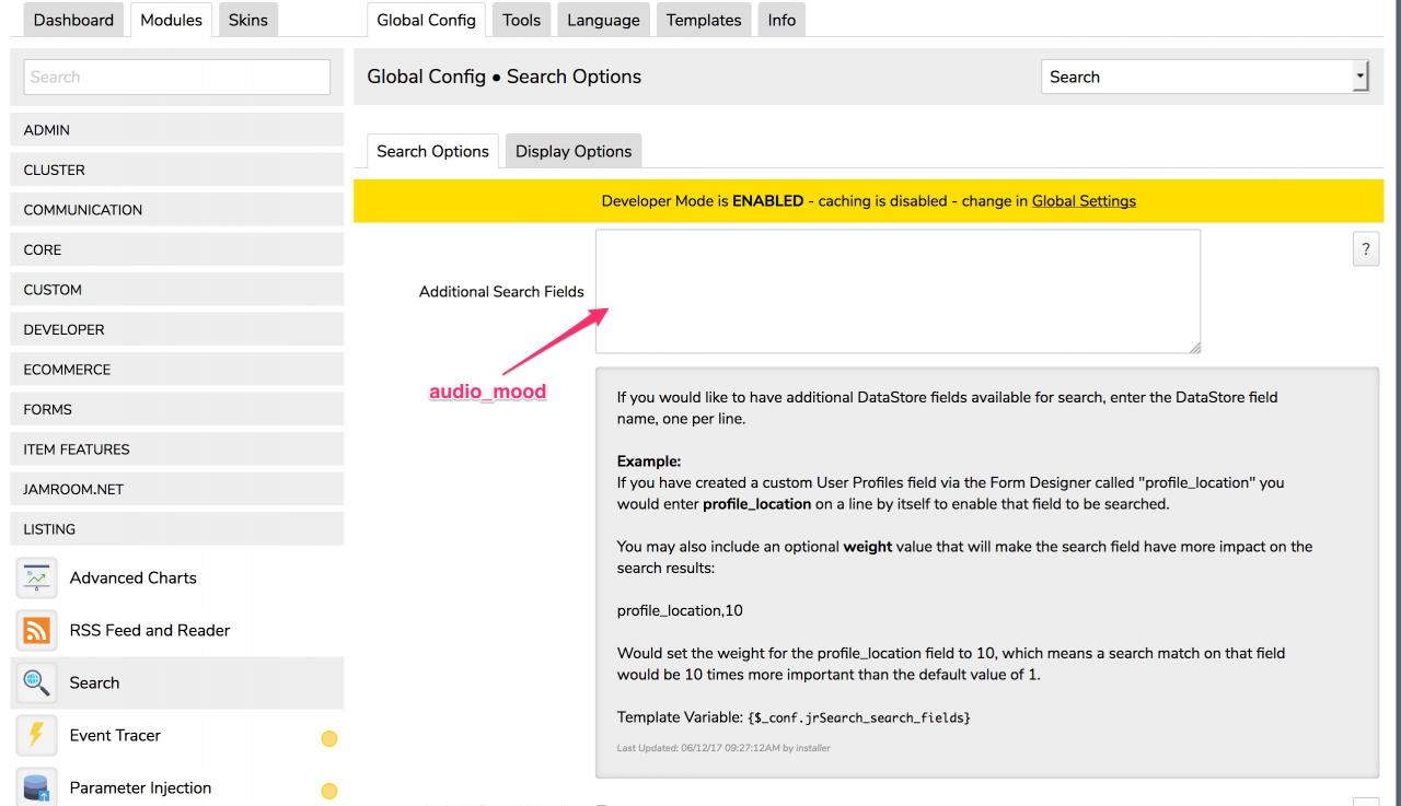 I created the audio_mood field using the form designer. Now artists are able to describe their song by selecting the mood. The problem is, when I search for the mood, it doesn't display any results. Check out the search bar here: tuneport.net how do i make this work? PS. audio_genre works fine.