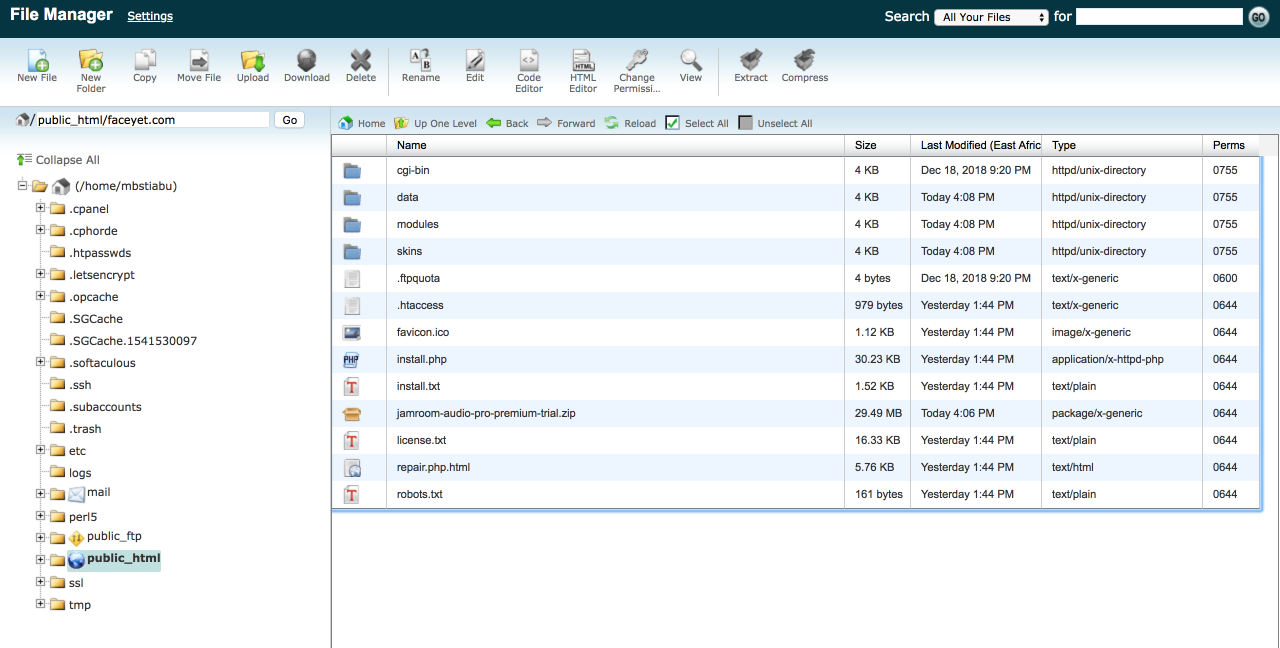 I uploaded the zip file via cPanel and extracted there. I did not extract via local machine and upload via FTP.