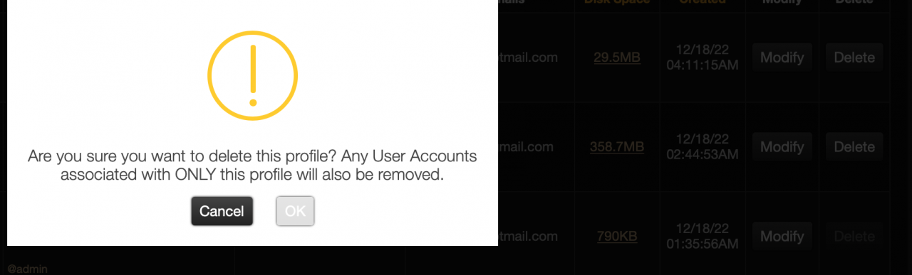 I have added music to them and deleted one of these new extra profiles using the delete button located on the "profile browser" page and YES it did in fact remove the only admin user account on the system rendering the Jamroom system forever inoperable with no admin.