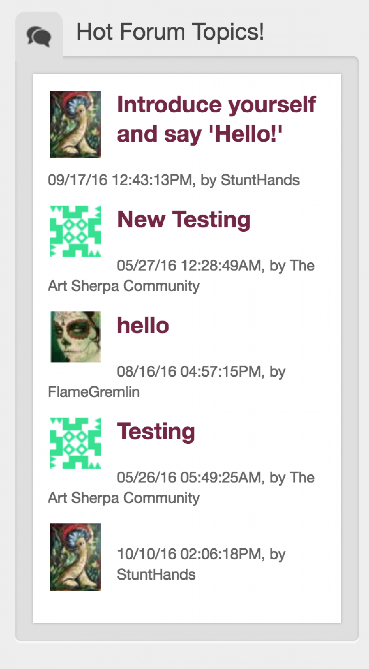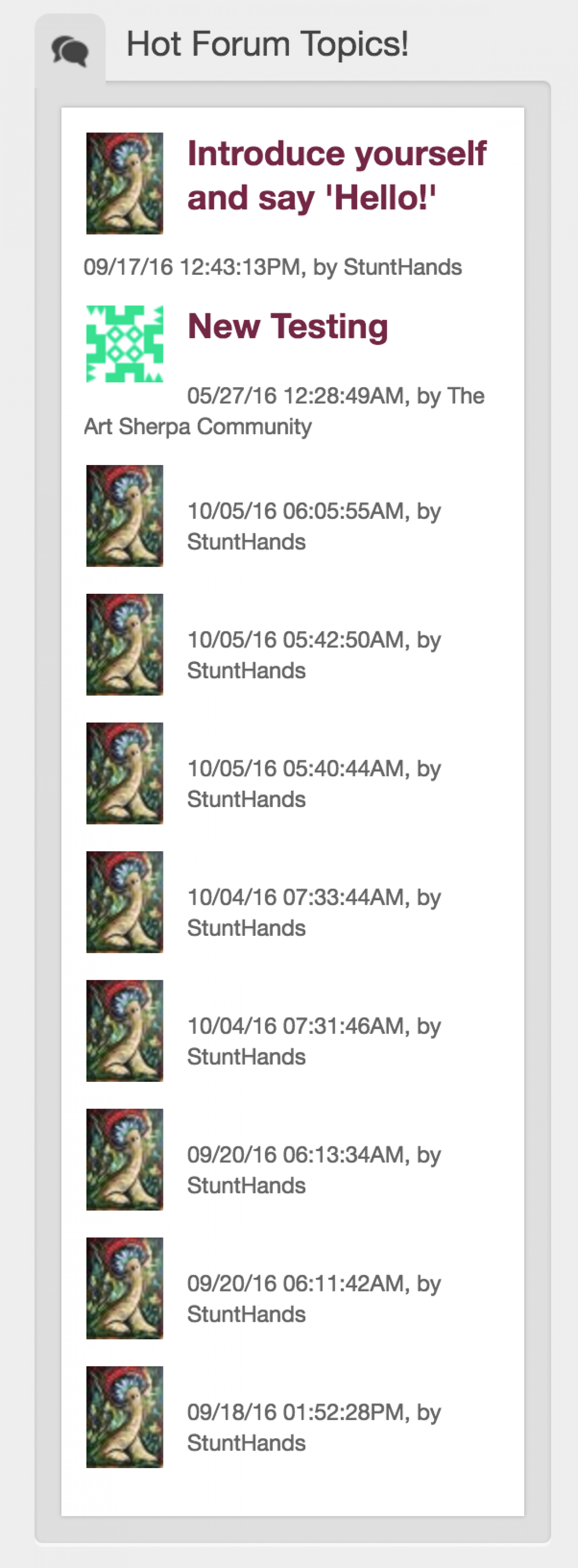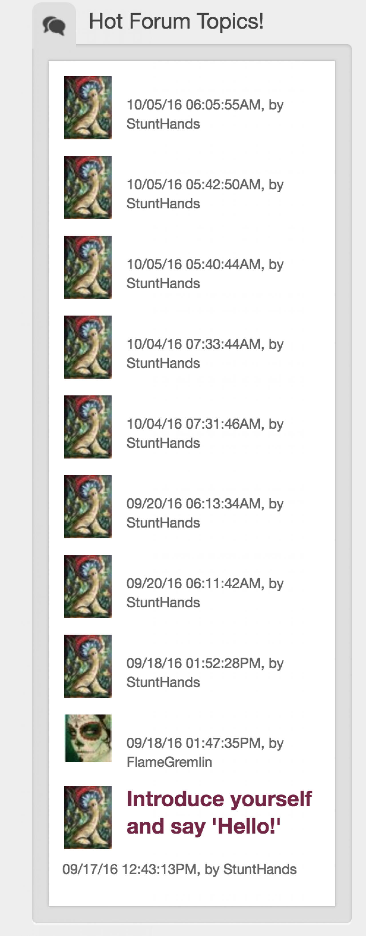 A widget on the main page that will show logged in users what the latest or most active posts on the forum are. This is to prompt user awareness that Forum activity is going on, not to provide an access/editing point to the forums.