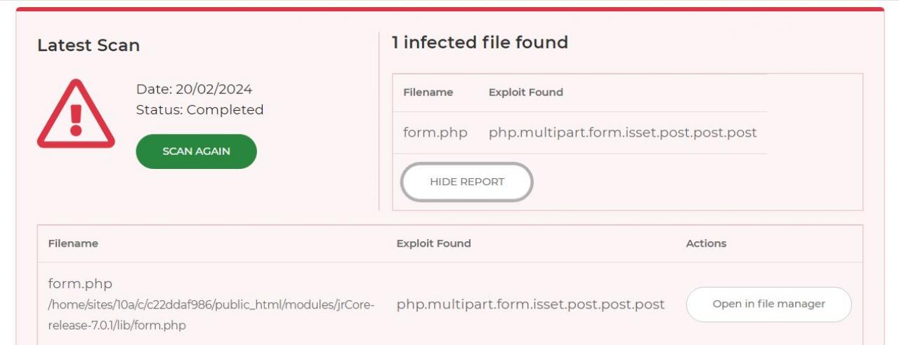 Having switched hosts recently, we are now getting reports that one of the files form.php contains malware exploit php.multipart.form.isset.post.post.post