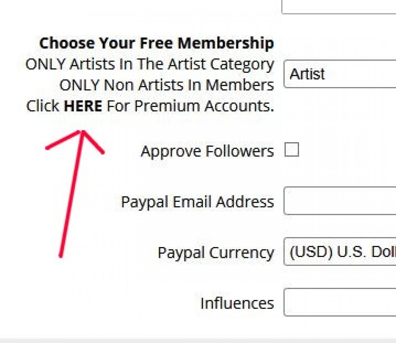 However, the typical scenario is someone signs up into a free category (artist, member. charity, business, DJ, model) and upgrades to a premium version later if they wish.
