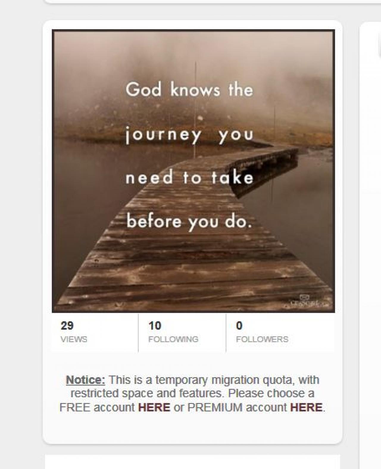 {if jrProfile_is_profile_owner($_profile_id)}Notice: This is a temporary migration quota, with restricted space and features.