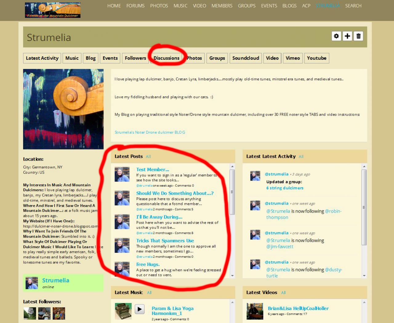 Right on my own profile page- see screenshot. All those posts inthe Latest Posts module are posts I made in GROUP Discussions...not in Forum discussions.