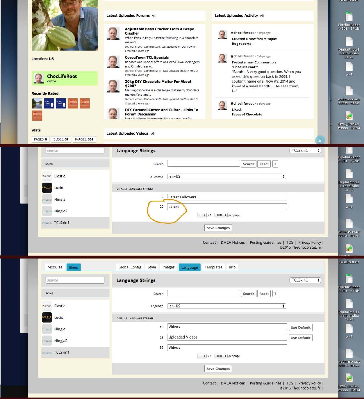 I searched on "Latest," got two results, and updated the one that did not have a modifier, and, as can be seen in the top image of the composite screenshot, three different labels on my profile page were modified.