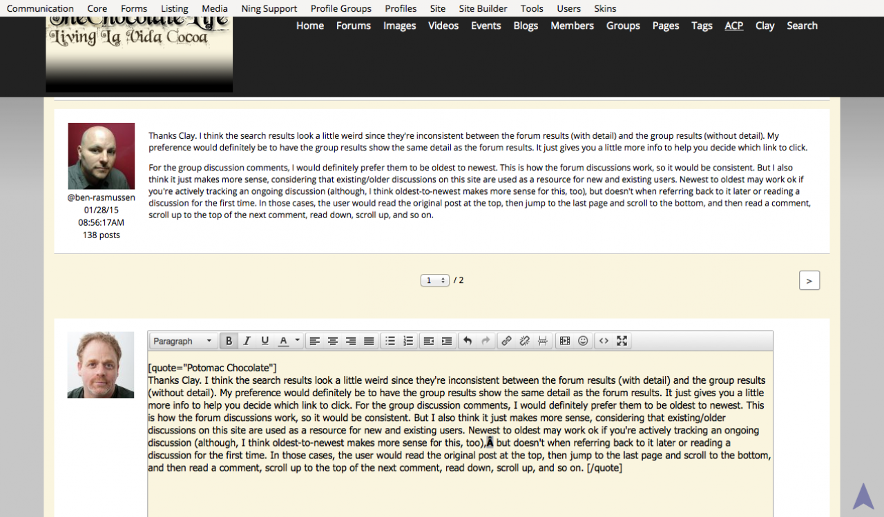 On a related but separate note, when I edit a comment I am returned to page 1 of the discussion, even if I am editing a comment on page 2 of the discussion. This is consistent behavior. What I would expect is to be returned to the page I was editing, preferably with the comment window visible.