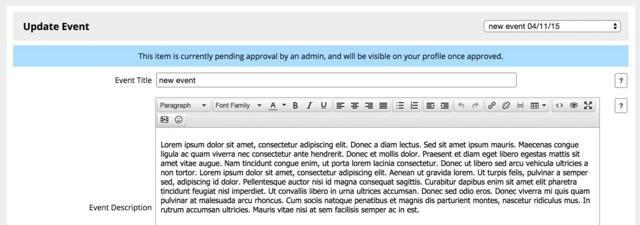 I had previously made sure that Events were set to "Approve on create" so that regular quota members could create a new event but it would need admin approval before appearing. Then I signed in as a regular member and had no trouble creating a new event which immediately showed up on the Main page Timeline/Activity feed, and also shows up in the index page Coming Events List Panel/module.