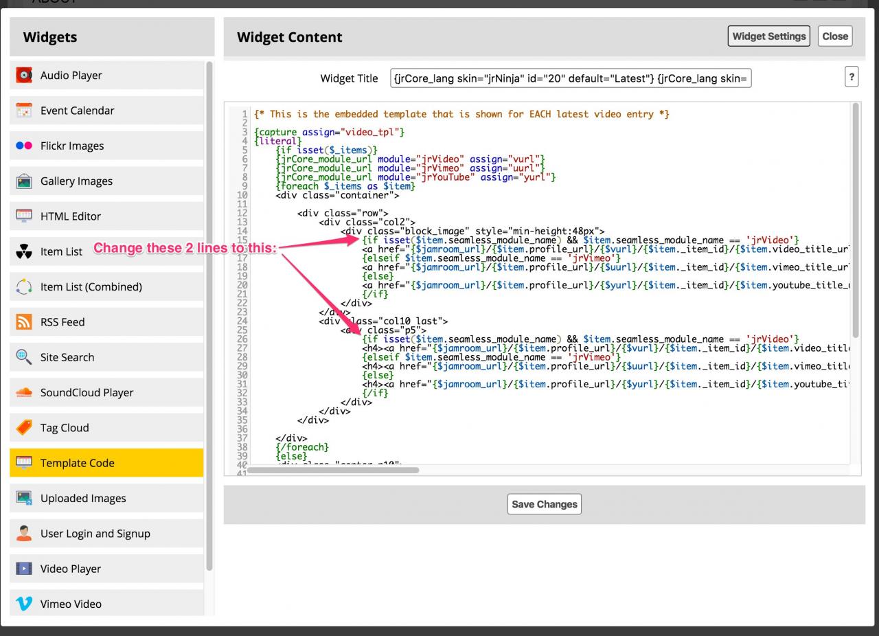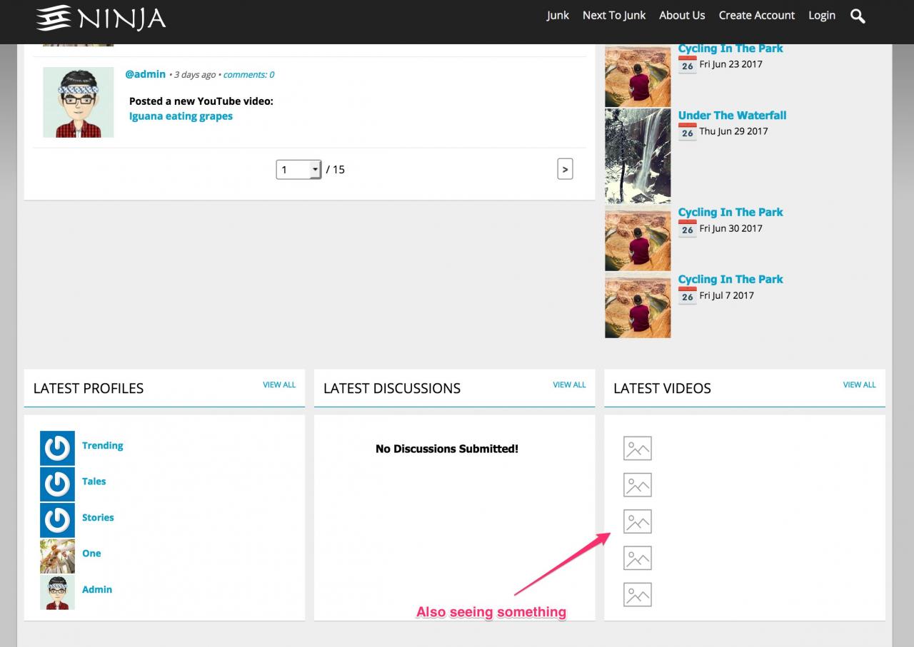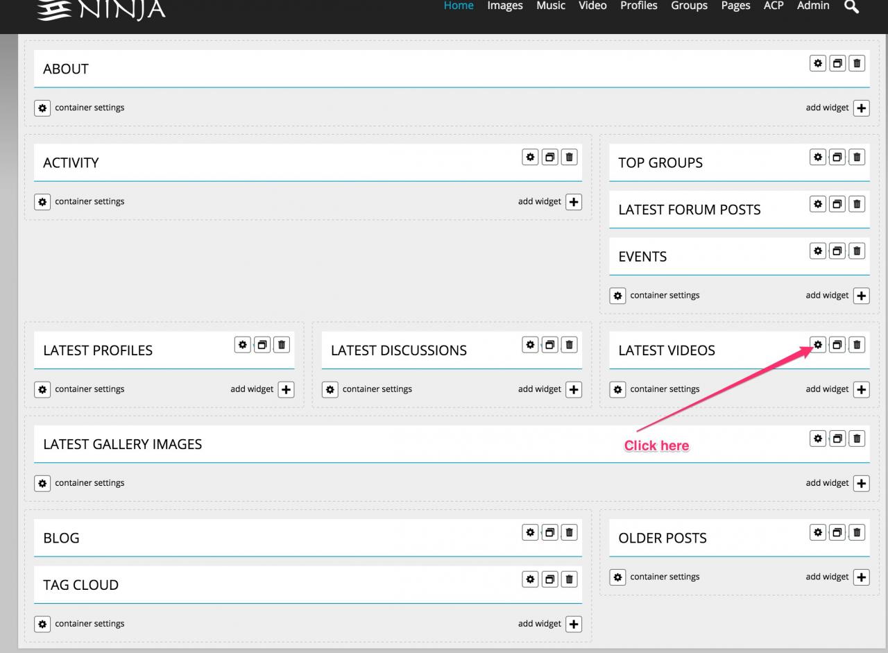 Ninja skin with Site Builder is missing thumbnail images and links for Video template.