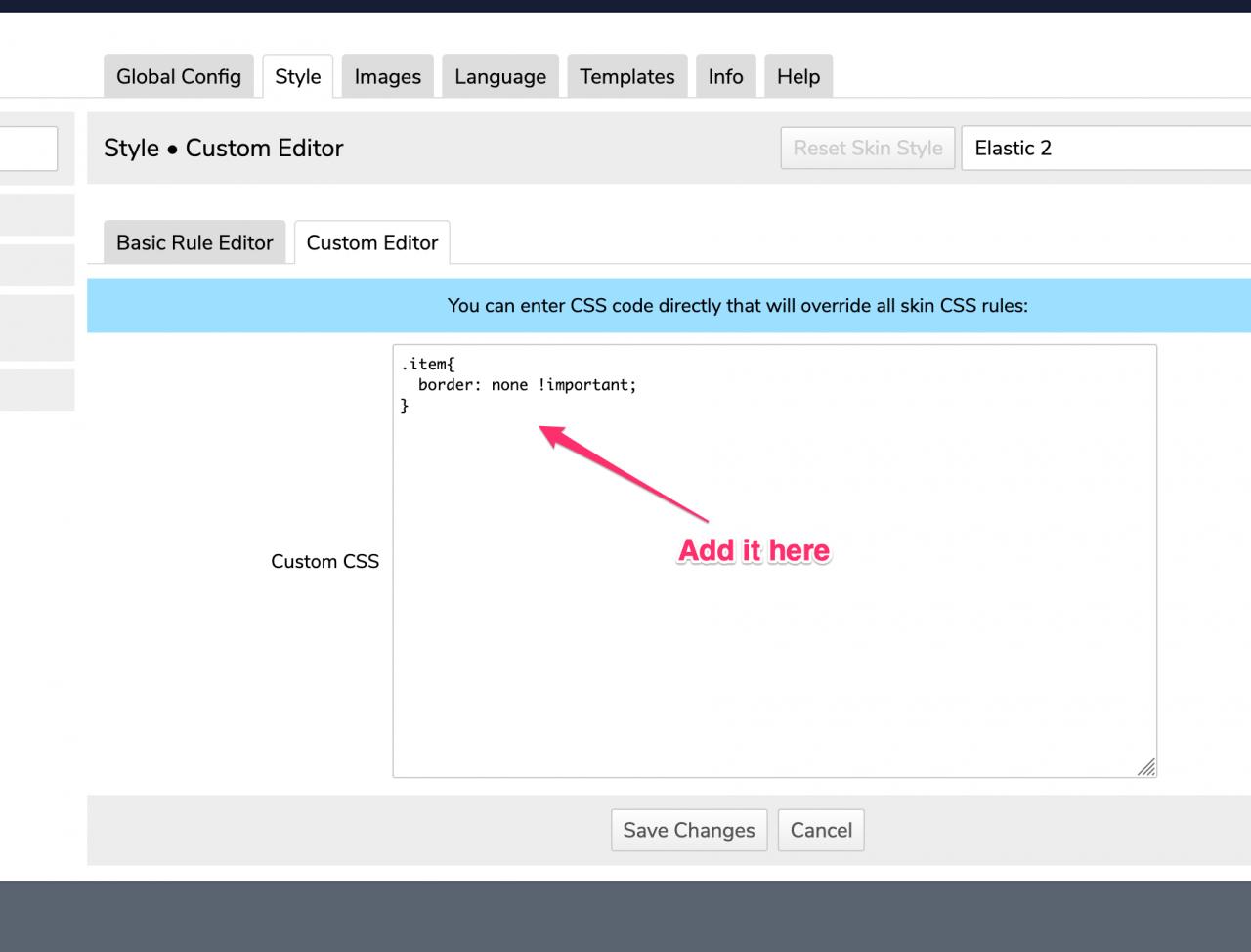 ACP -> SKINS -> (your skin) -> STYLE -> CUSTOM EDITOR -> add some custom css in here