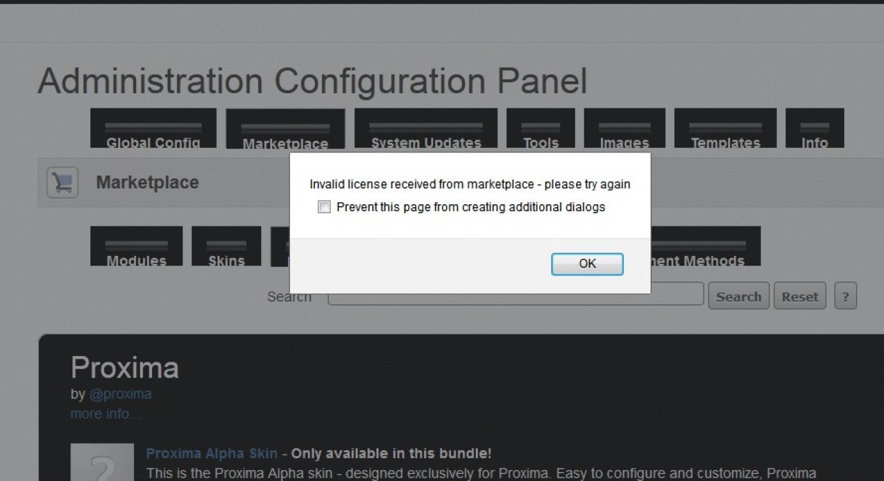 Im very excited to play with this. I have had a game put on hold the last 2 years yet always planned on using Jamroom to power the user accounts! Tried installing Proxima today to give it a run and it says invalid marketplace license.