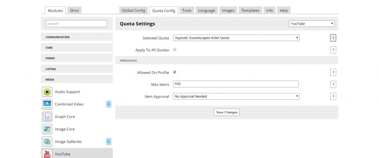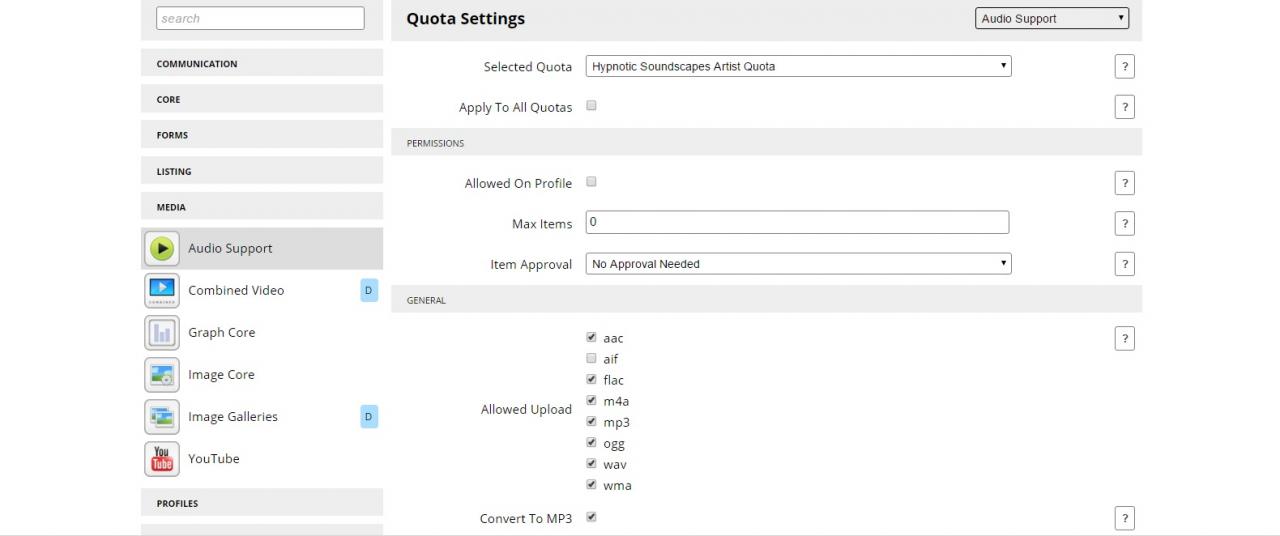 Have you enabled Audio and YouTube in the Quota's for each of those modules?