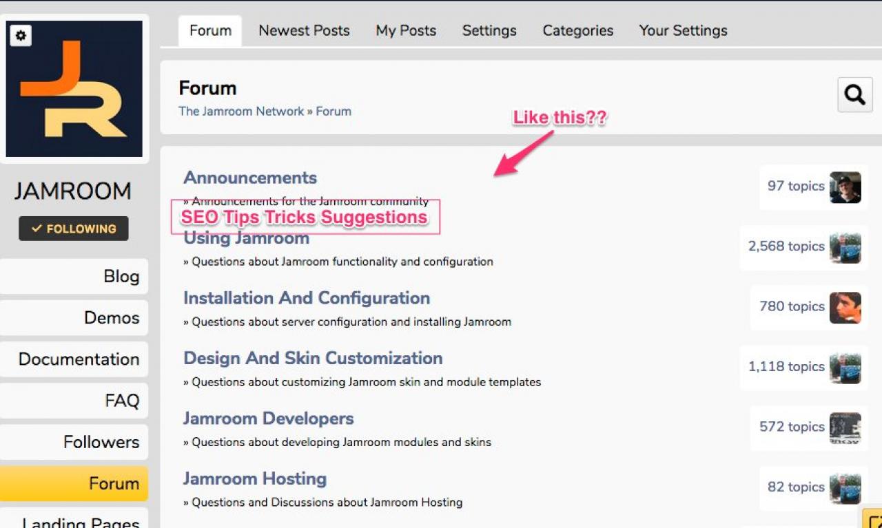 where we could learn SEO specific to Jamroom from others...