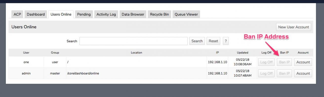 When I click ban IP