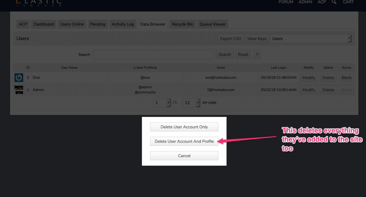 And the users email, username and ip will be added to the ban section