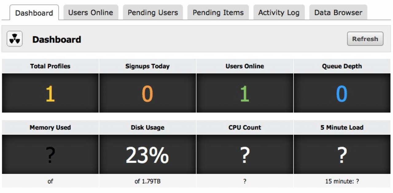 When question marks are shown in place of a percentage, the Memory Used question mark is a different colour to the other two.