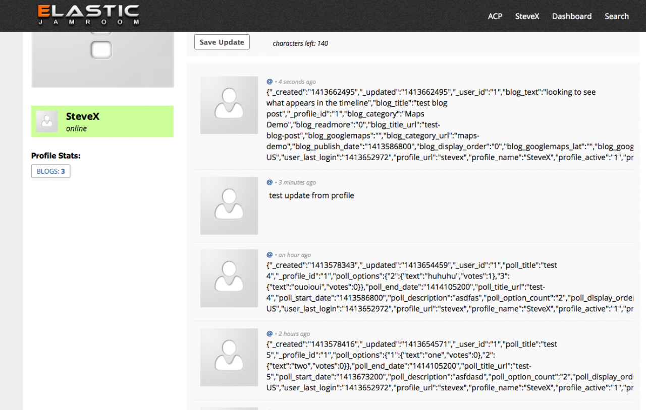 I only have one profile on this test site, just noticed that the timeline is showing json. Using Elastic, but it stays like that if I switch to Lucid.