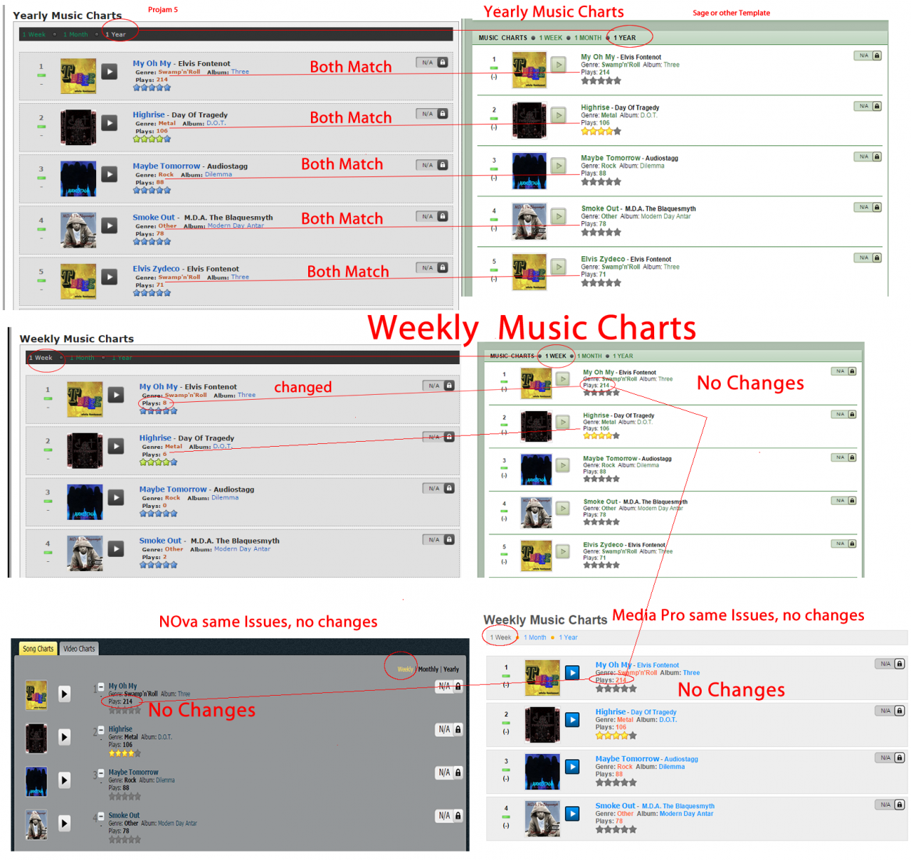 On old Jamroom 4 I like the function that when selected the weekly charts it only showed the Artist, the song and its number of plays that week. When selected on monthly the charts only showed the Artist, song and its number of plays for that month, so on. This made the charts a very exited way of promoting the Artists.