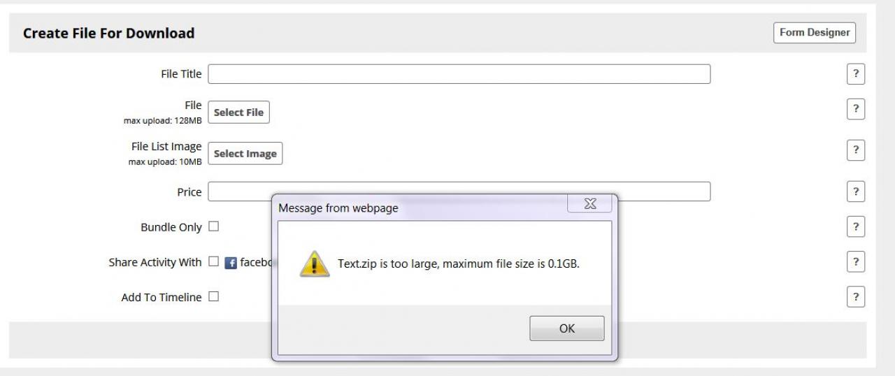 I have a client who wants to sell a zipped file about 750MB containing her artwork.